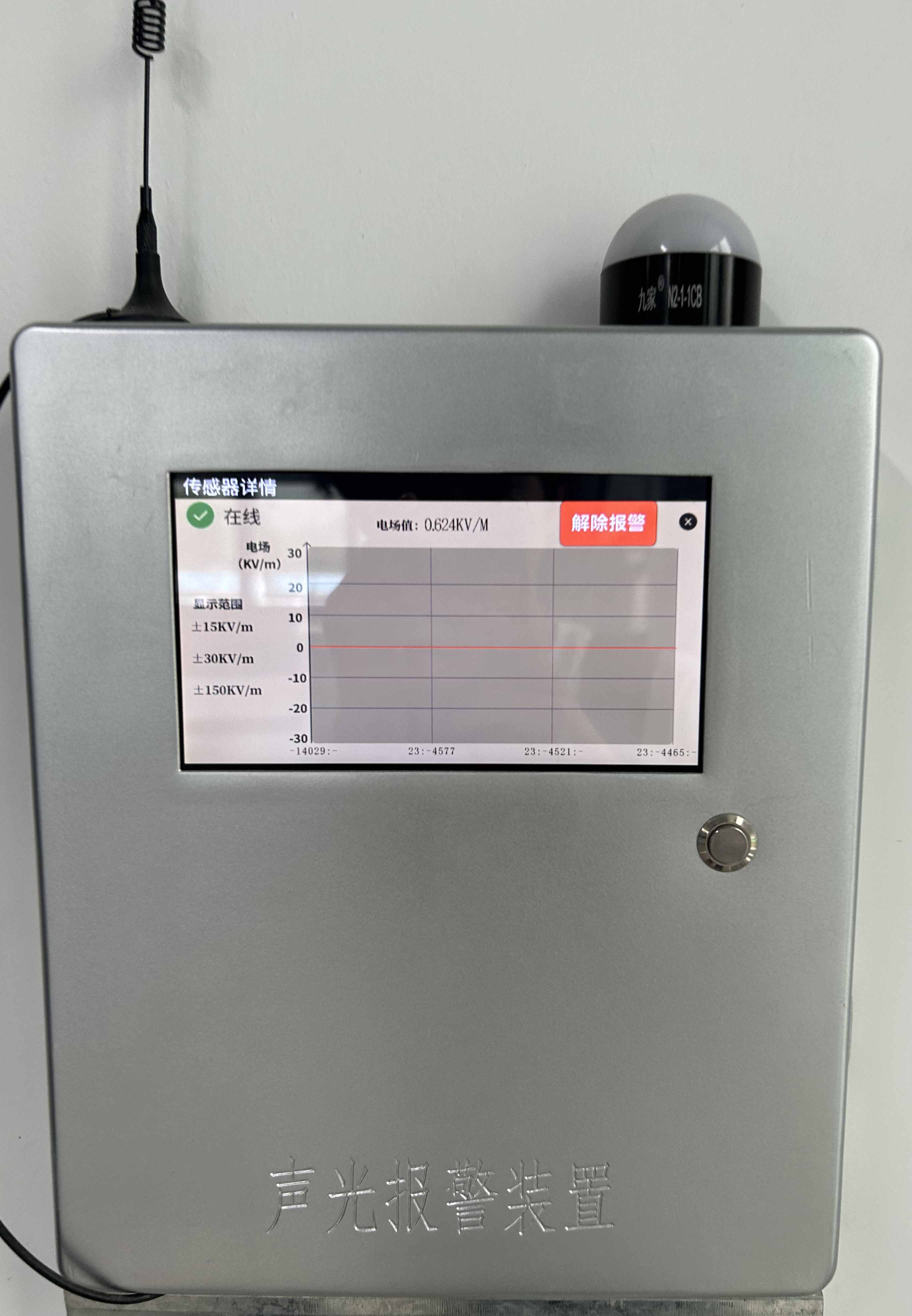 4. 7寸触摸:屏实时显示前端传感器的电场数据,展示实时电场值数据及历史曲线记录。提供界面操作,支持数据导出将监测数据通过U盘导出,方便数据记录和后续分析