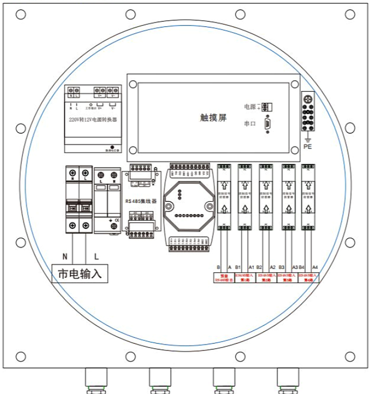 | 通讯接口 | 标配4路RS485输入,1路 RS485输出(可定制100/100M网络、433M、2.4G、4G、5G) |