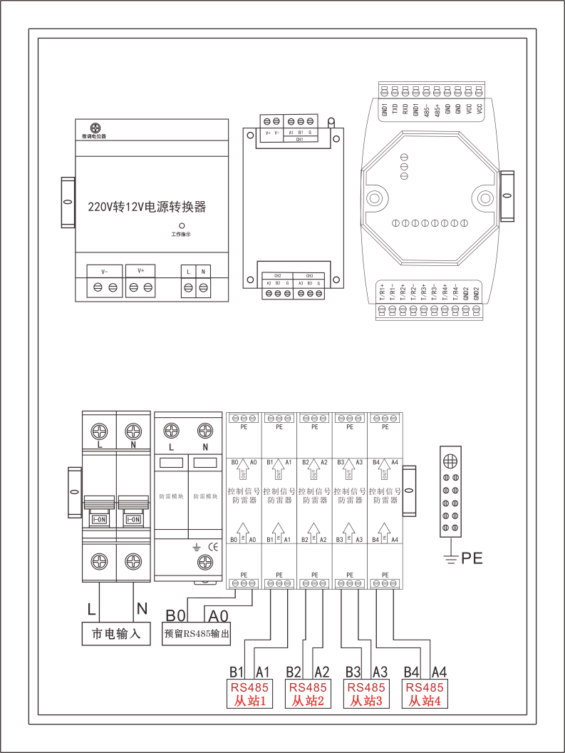 ● A0,B0为上位机预留扩展接口,A,B端切勿错接。