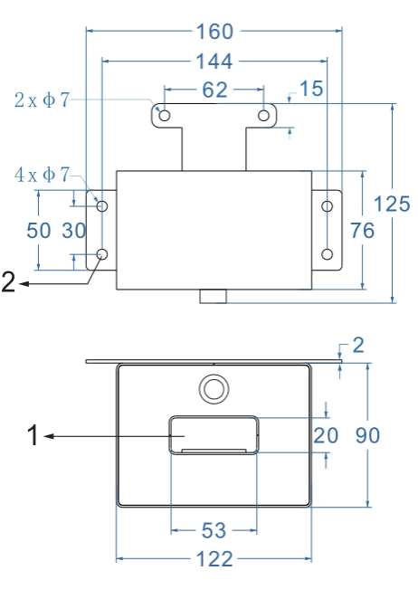 1、地线穿孔尺寸:53mmx20mm 2、安装螺丝孔Φ7mm